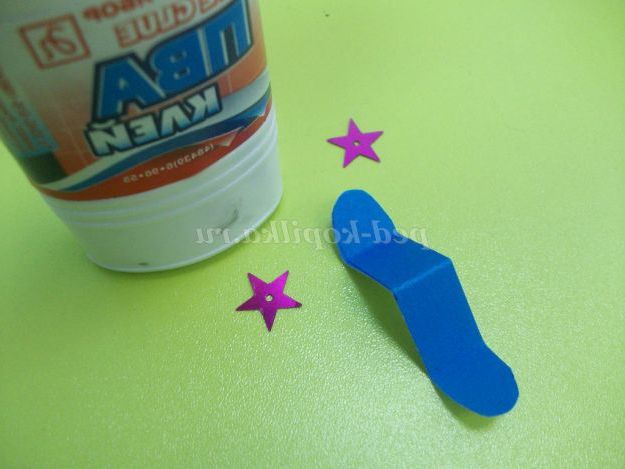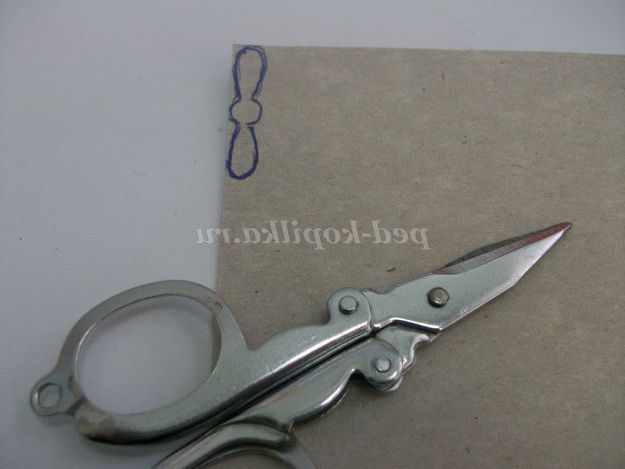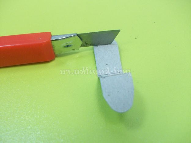 Хвіст. Вирізаємо смужку 5 см *1 см. З двох сторін краю заокруглюємо. Смужку ділимо на три частини по 1.5 див. Згинаємо за допомогою концелярского ножа.