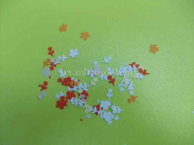 З кольорового паперу за допомогою декоративного дыракола - отримуємо маленькі квіточки.