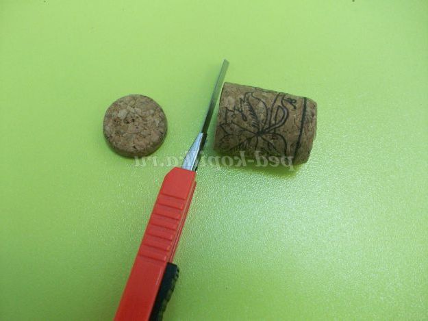 За допомогою голки, проколюємо пробку і закріплюємо деталь.