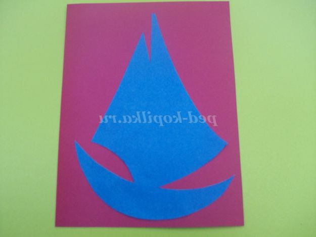 Вирізаємо вітрило з червоного паперу: висота 10 см, ширина 4.5 див.