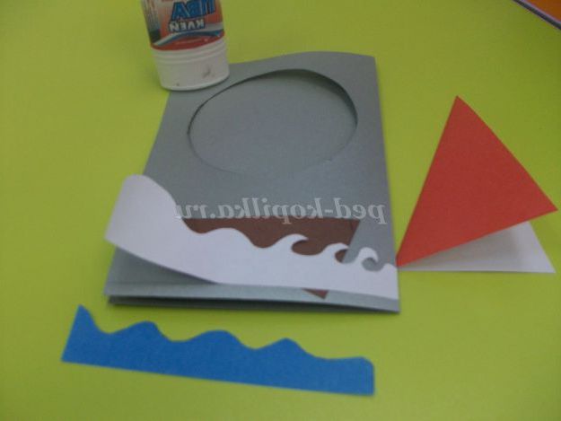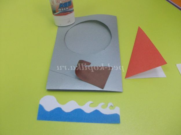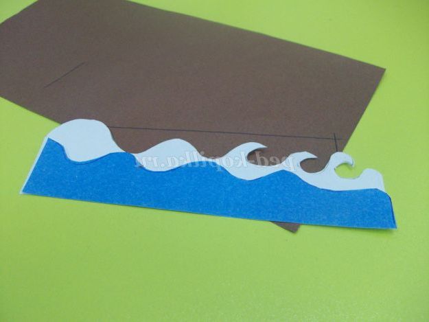 Хвилі накладаємо на лист коричневого кольору малюємо човен. Вирізаємо.