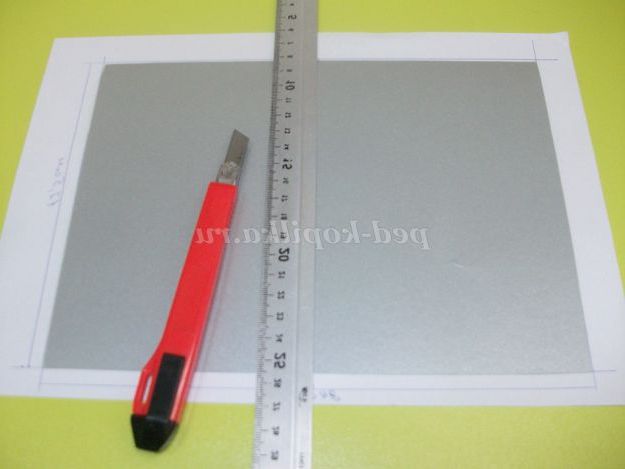 Довжину ділимо навпіл (12 см), тупою стороною канцелярського ножа проводимо по лінії згину.