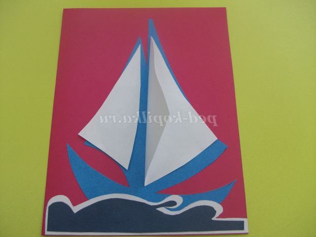 На основу приклеюємо вітрильник. Верхівку щогли залишаємо не приклеєною.