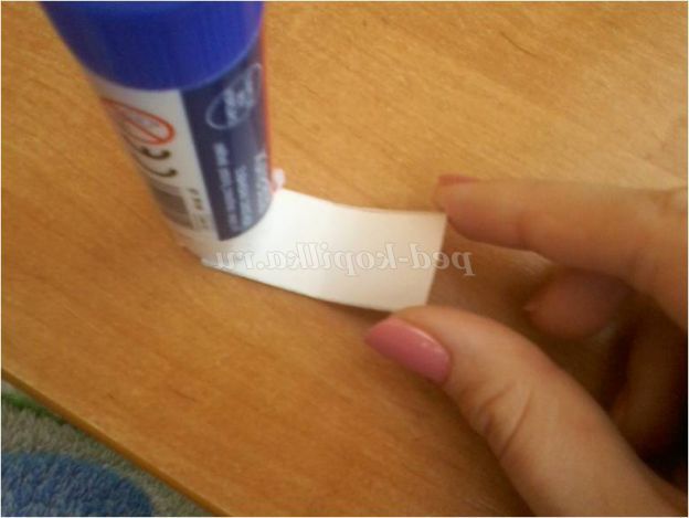 5. Візьміть одну маленьку смужку і нанесіть клей на один край.