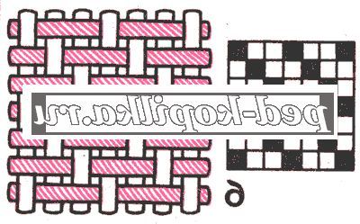 4. Будь-яка тканина складається з взаємно перпендикулярних переплетених ниток основи і качка. Послідовність, в якій переплітаються нитки, створює той чи інший малюнок переплетення ниток в тканині. У нашому випадку нитками будуть служити стрічки. Ви можете вибрати будь переплетення на свій смак (а. полотняне переплетення, б. саржеве переплетення, ст. сатинове переплетення).