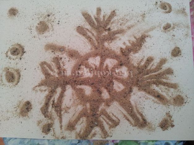 Дуже часто починаючи працювати дитина боїться забруднитися, зіпсувати малюнок або помилитися в пропорціях. Пісок руйнує всі ці сумніви. Його податливість, м'якість, сипучість відкриває безмежні художні можливості.