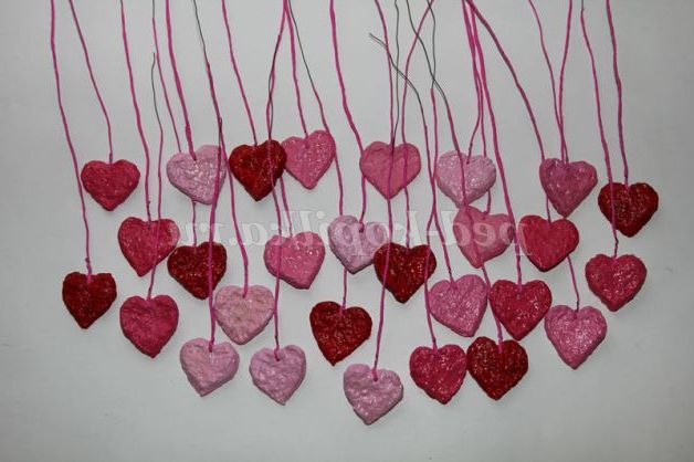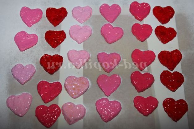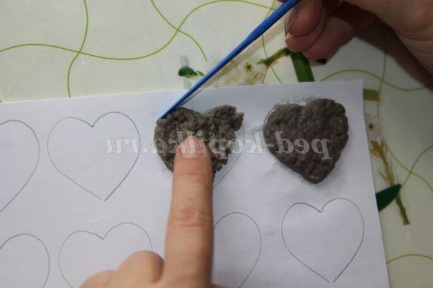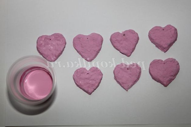 Викласти з паперової маси сердечка, акуратно поправляючи стеком. Висота шару близько одного сантиметра. Сердечка відшліфувати стеком.
