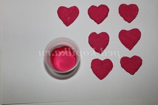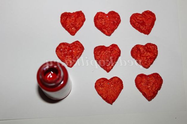 Останні сердечка пофарбуємо колеровочной пасти (червоного кольору).