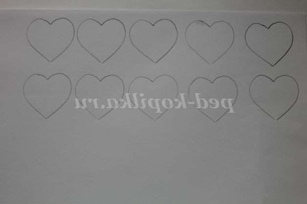 На аркуші білого кольору обведемо по шаблону сердечка.
