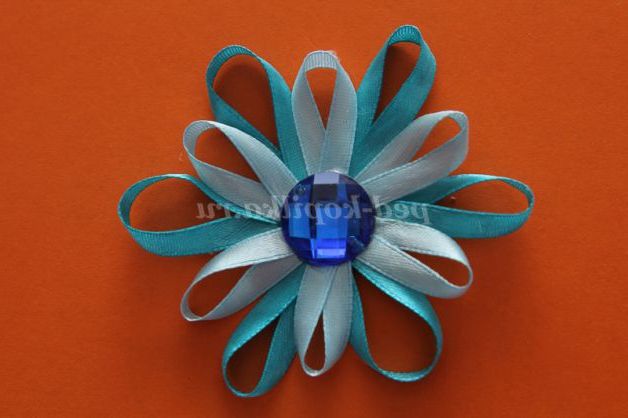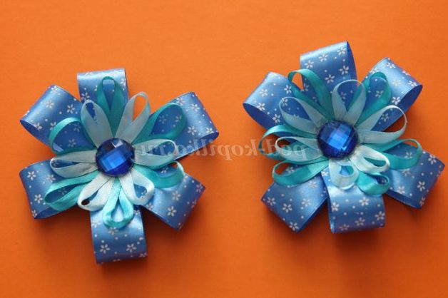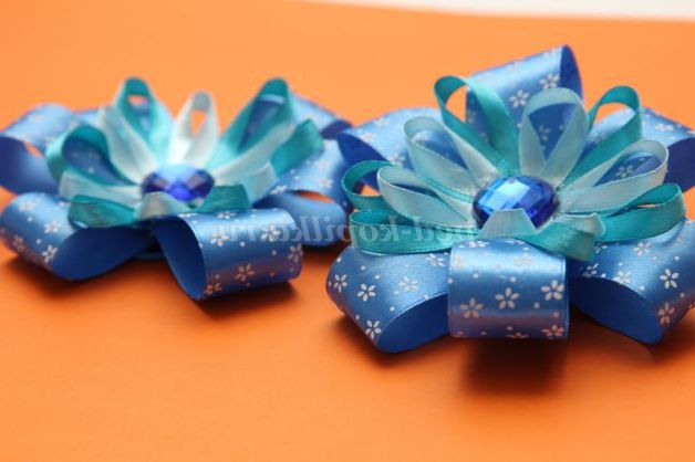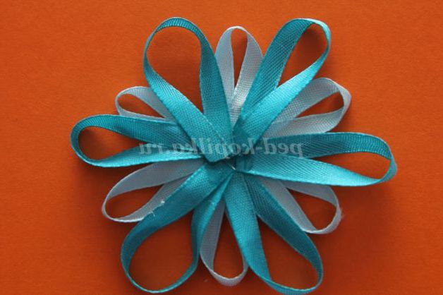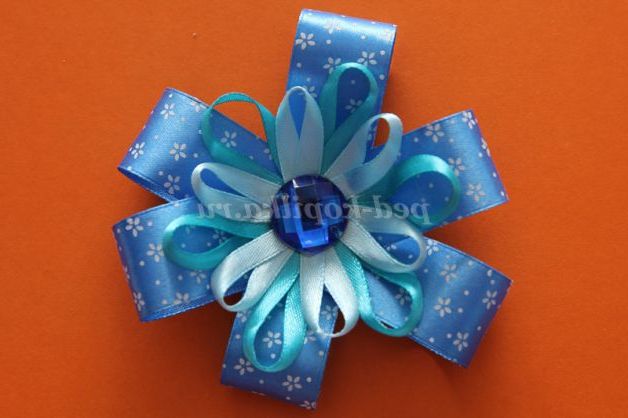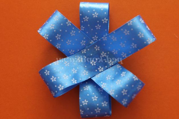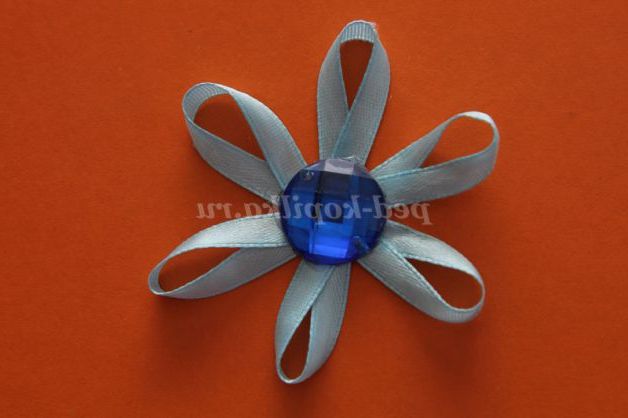 Візьмемо отриманий квітка і приклеїмо на бант у вигляді сніжинки блакитного кольору.