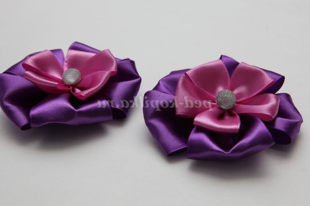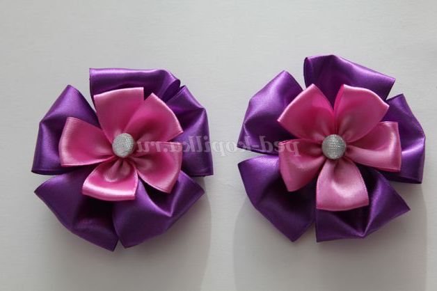 Майстер - клас гумка з атласної стрічки рожевого та фіолетового кольору.