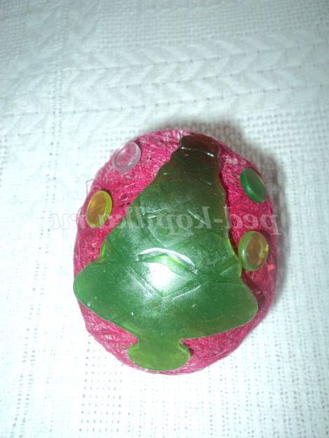 12. Можна наклеїти на кульки готову кольорову аплікацію з цукеркової обгортки. Прив'яжемо до кульок ниточки і наші чарівні кульки готові до новорічної ялинки.