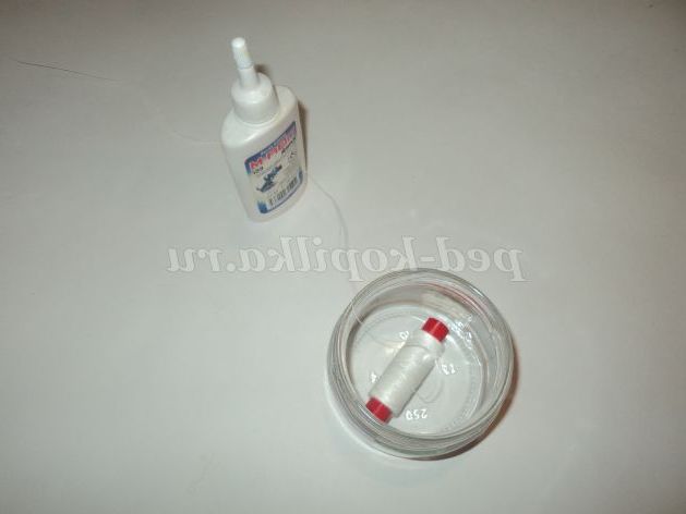 3. Котушку покладемо в скляну баночку так, щоб нитка разматывалась з неї.