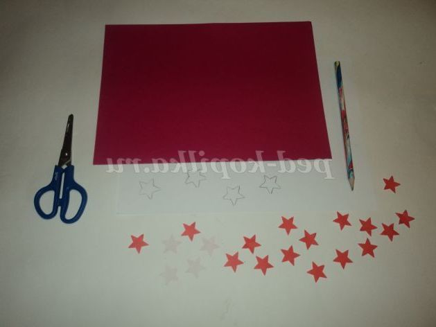7. Намалюємо на червоній і білій папері зірочки. Вирізаємо зірочки.