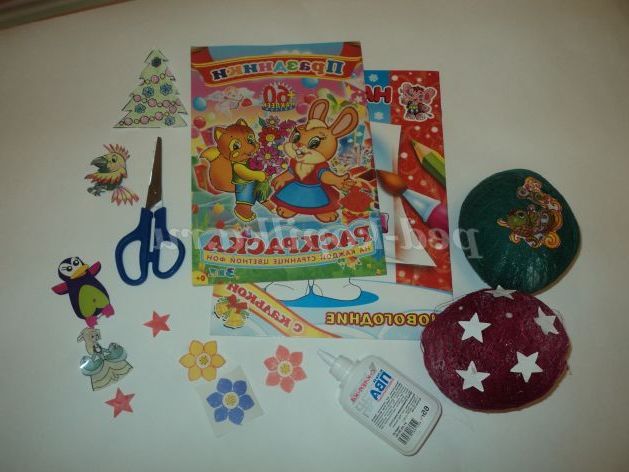 8. Виріжемо з книжок картинки або скористаємося наклейками. Прикрасимо кульки.