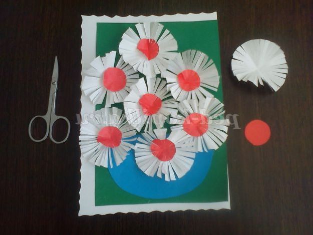 6. Таким же чином робимо квіти з паперу червоного кольору (кола радіусом 1,5 см).