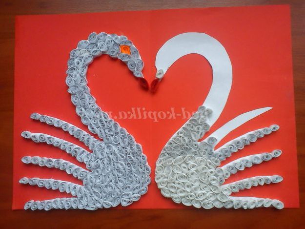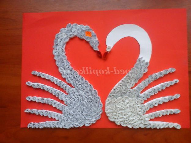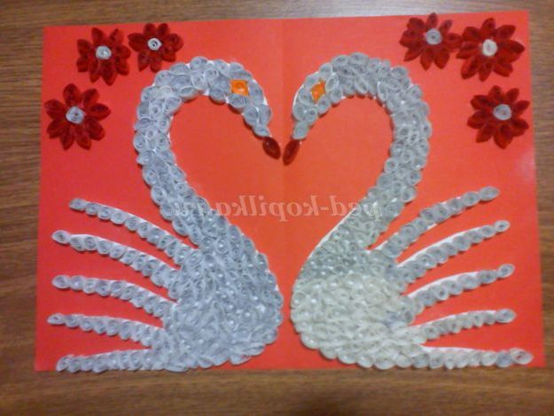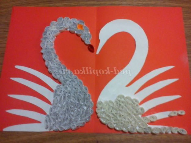В День Святого Валентина прийнято вітати своїх улюблених і дарувати їм подарунки. Зробимо подарунок своїми руками для своїх дорогих людей. Подаруємо їм листівку, на якій зображені лебеді.