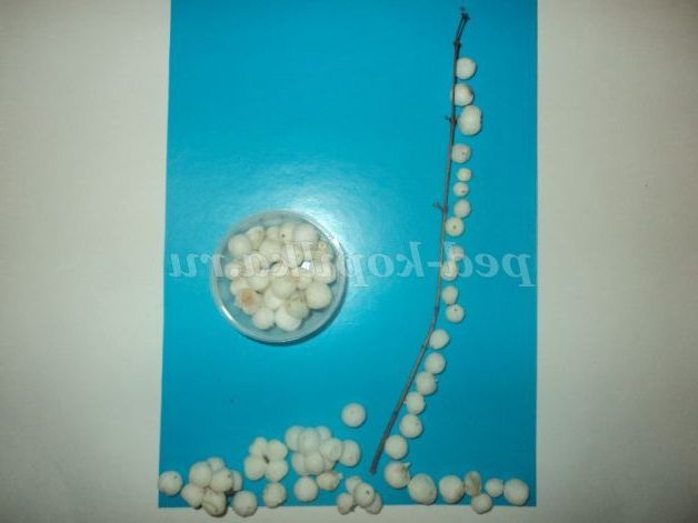Приклеюємо паличку з білими ягодами до листа синього картону.