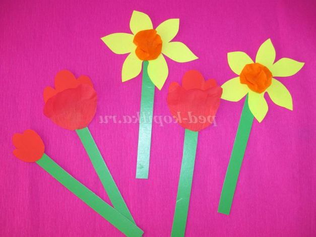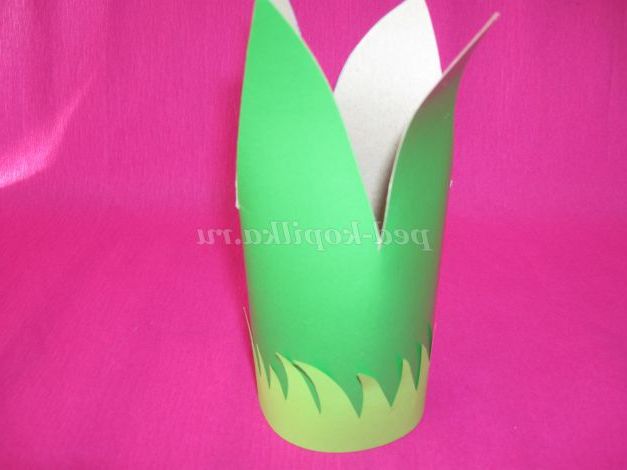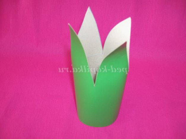 До кожної квіточки приклеюємо зелене стебло картонный.Получается 5