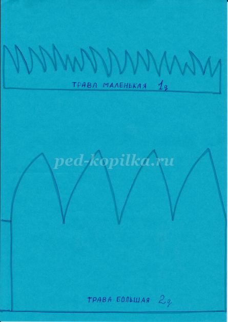 Обводимо на темно зеленому картоні велику траву дет 2 1шт і вирізаємо