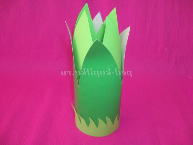 Звертаємо в трубку велику траву і склеюємо,відгинаючи трохи краю трави