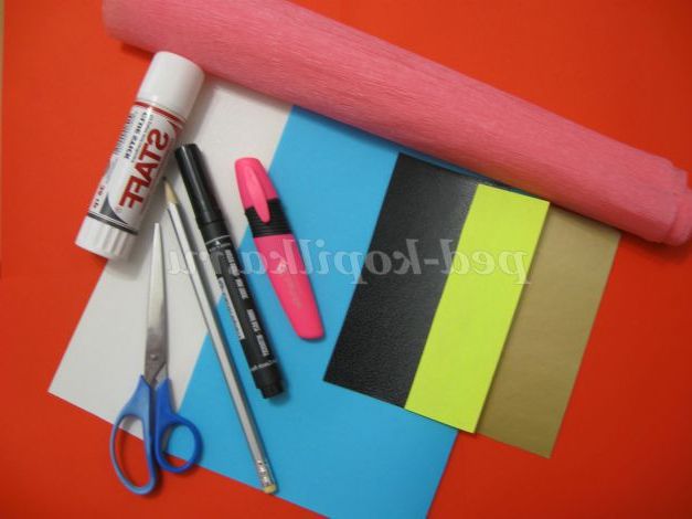 -нарізаємо з гофрованого паперу смужки шириною 2 см і довжиною приблизно 2м,