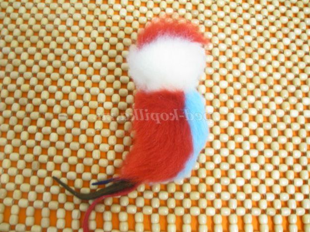 У зшитого підстави хвостика склеюємо трохи всі 3 частини хвостика