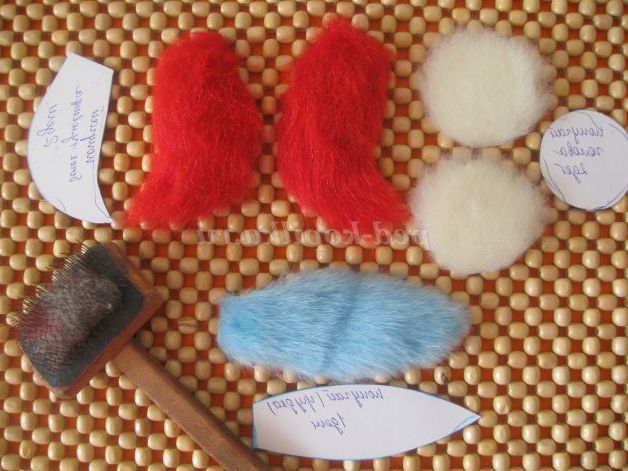 Вирізаємо деталі голови, боковинки тулуба,грудку,розчісуємо щіткою з гострими кінцями,