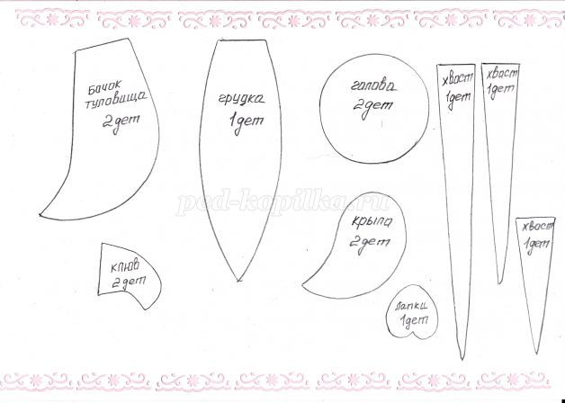 Для тих, хто захоче зробити подібних папужок викладаю викрійки