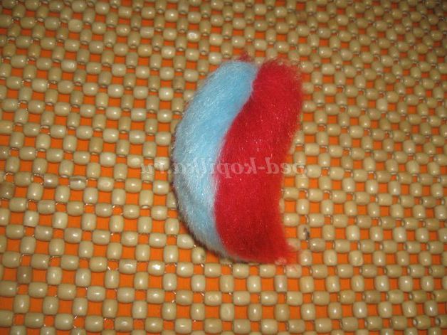 Вирізаємо маленький вузький шматочок хутра приблизно довжиною 4 см і шириною 5-6 мм, це чубчик (попередження: вирізаємо кінчиками ножиць,щоб не зрізати подворс)