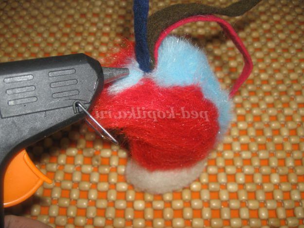 Приклеюємо вирізані лапки з фетру внизу тулуба