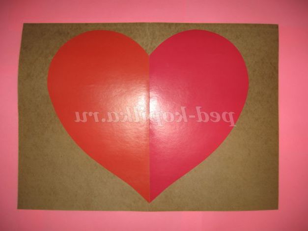 Викроюємо серце з двох половинок(червоний картон двох відтінків).