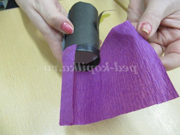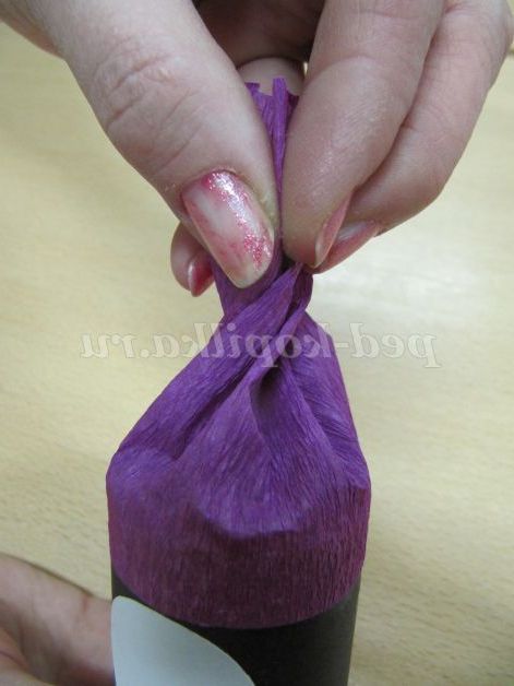 «Одягаємо» шапку (необхідно ретельно намазати краю заготовки клеєм і обертаємо заготівлю креповой папером).