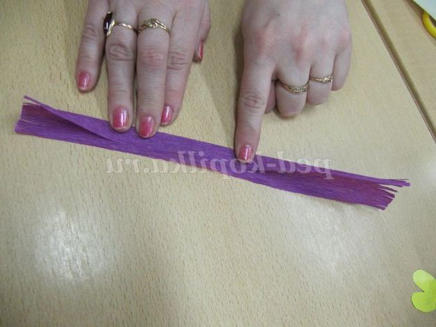 «Одягаємо» шарф. Скласти заготовку навпіл по довжині (щоб не порвати «шарф» при зав'язуванні).