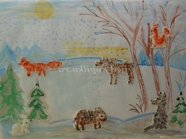 Освітні завдання: формування у дітей уявлення про зимовий ліс, його мешканців: флори і фауни (диких тварин, птахів, і деревах), закріплення знань про характерні особливості пір року;