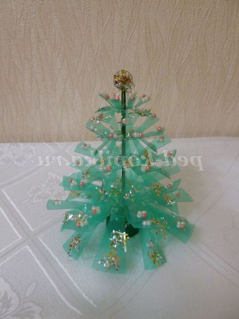 9.Отломим шпажку за розміром ялинки. Використовуючи бісер, дрібно нарізану мішуру, гудзик і клей довільно прикрашаємо ялинку. Можна прикріпити до ялинки нитку - вийде ялинкову прикрасу. Моя ялинка стоїть на пробці від пластикової пляшки (в кришці зроблена дірочка під стовбур).