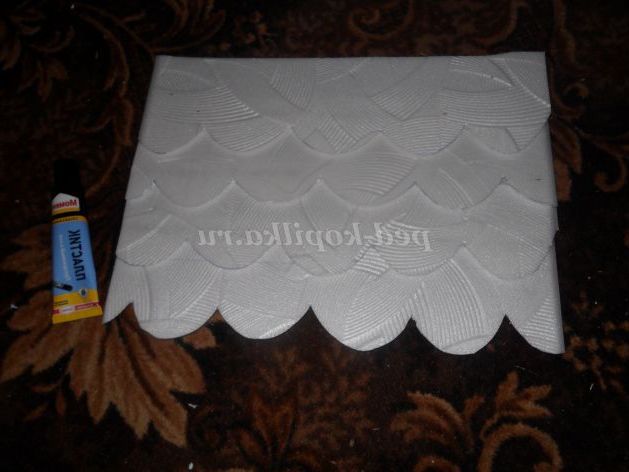 Для даху вирізаємо з полосок плитки деталі, що імітують черепицю,