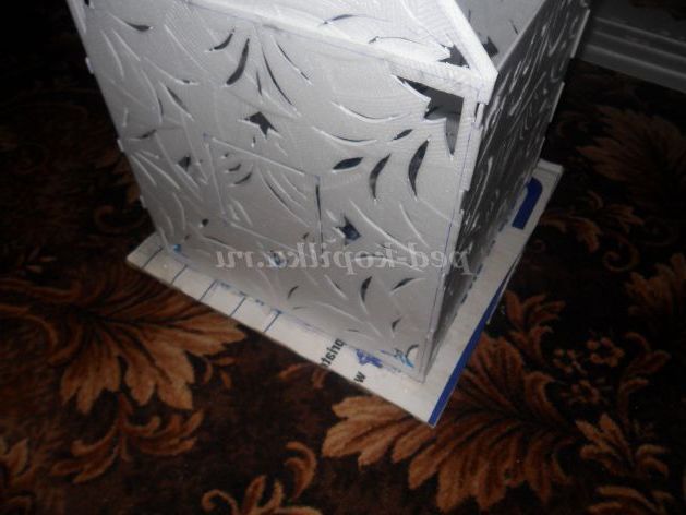 Для підставки вирізаємо з пакувального картону квадрат,трохи побільше підстави будиночка
