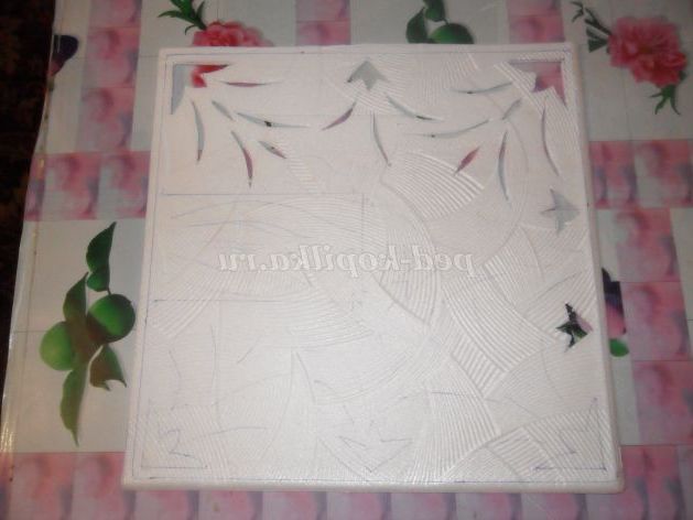 Для виготовлення будиночка беремо стельову плитку і расчерчиваем деталі(4 квадрата стіни,2 трикутника з основою такого ж розміру,як і сторона стіни). Розміри можуть бути будь-якими, в залежності від того, який будиночок у підсумку ви хочете отримати(у мене 30*30 см).