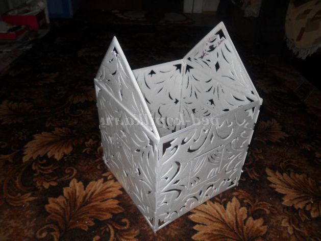 Вирізаємо заготовки, розмічаємо на них розташування вікон, дверей і майбутній візерунок, а також по всьому периметру відзначаємо відстань по 0,5 см(допоможе для скріплення деталей).
