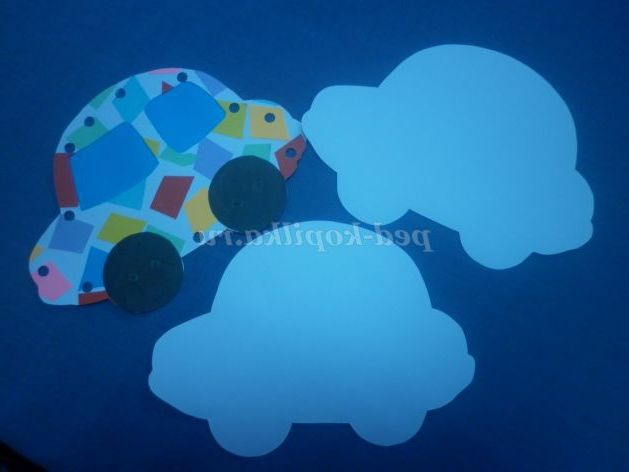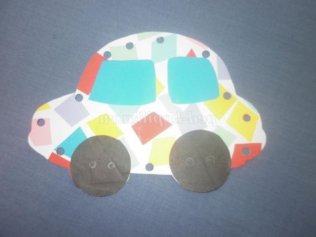 3. За шаблоном вирізаємо автомобіль, приклеюємо вікна, колеса
