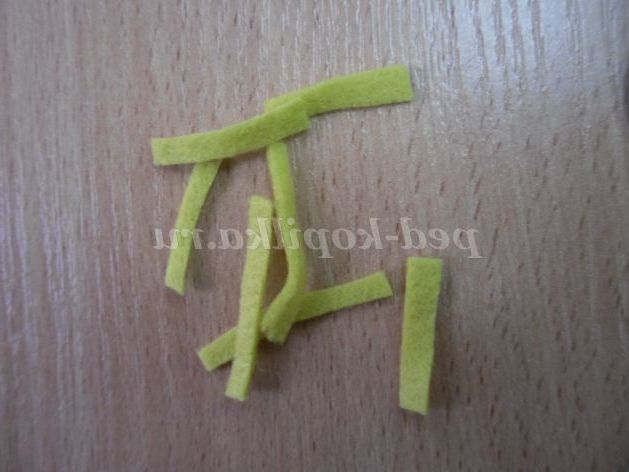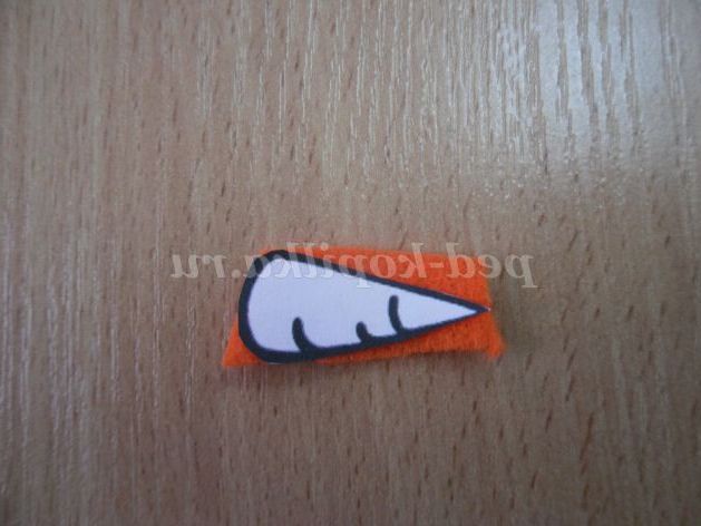 Для натуральності виконання носа сніговика використовуємо обрізки фетру коричневого кольору.