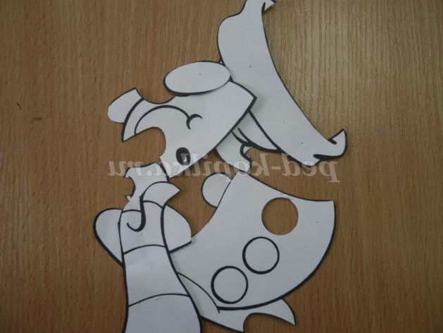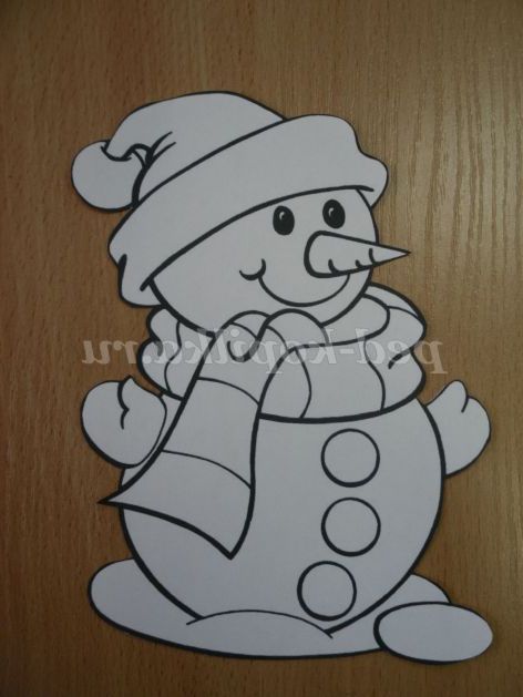 На першому етапі беремо шаблон сніговика і вирізаємо його по контуру.