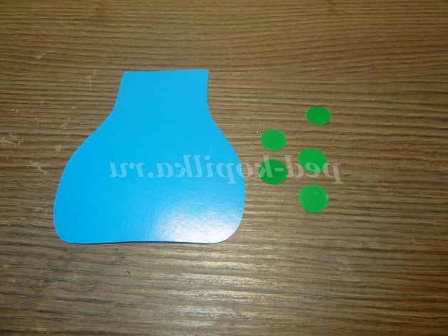 1. Вирізаємо вазу по шаблону з синього картону, а серединки квітів з зеленого.