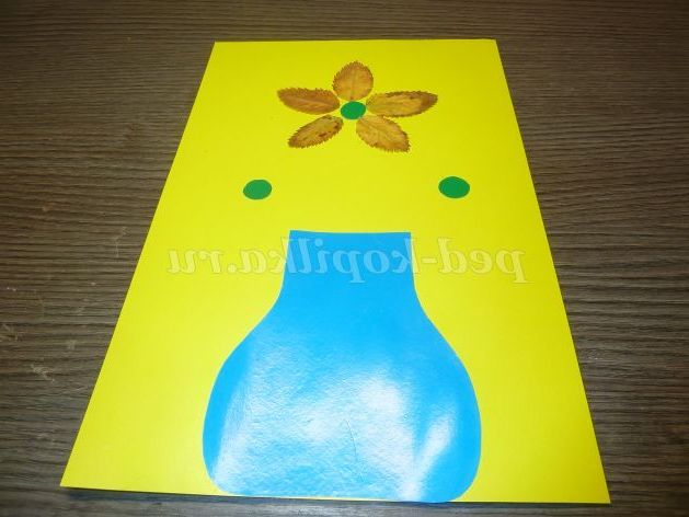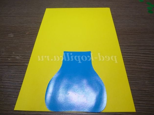 2. Приклеюємо вазу на аркуш жовтого картону.