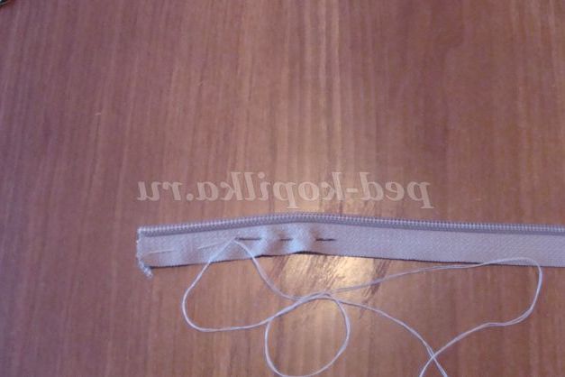 Вставляємо нитку в голку і стібками прошиваємо одну частину замку.