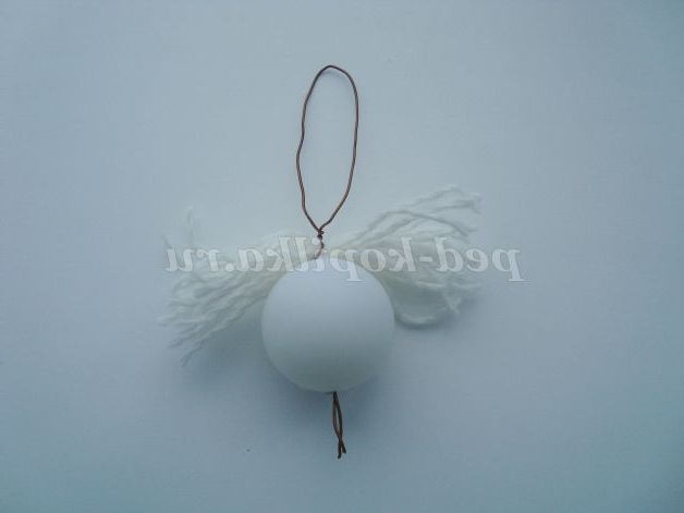 Зробіть в кульці дірки (гарячим шилом) і протягніть кінці дроту. Якщо немає кульки, можна зробити його з солоного тіста (поки не висохло виконати наскрізний отвір).