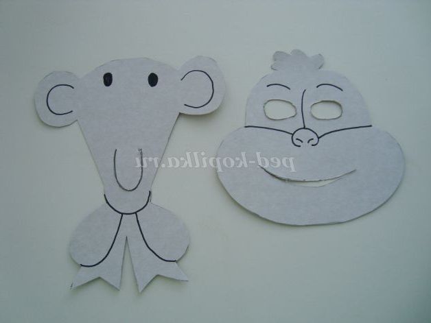 Вирізаємо по контуру (допоможіть дітям прорізати рот і місця для очей). Домальовували.