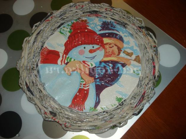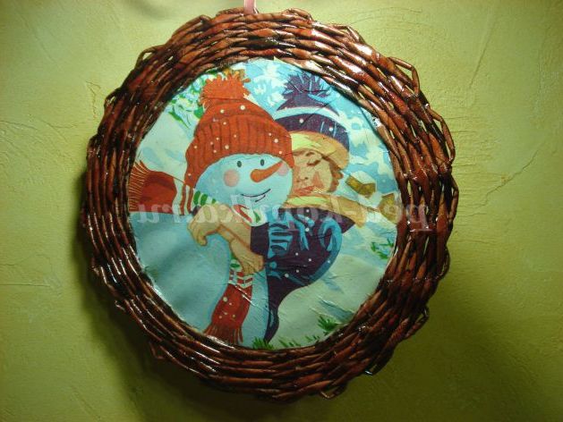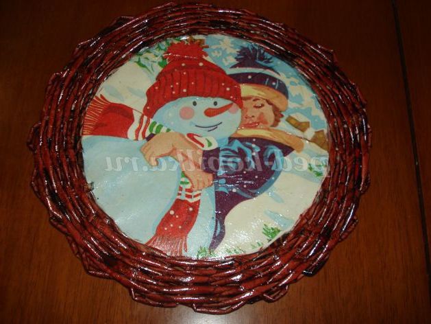 Техніка виконання: плетіння з газет, декупаж.