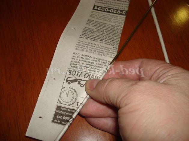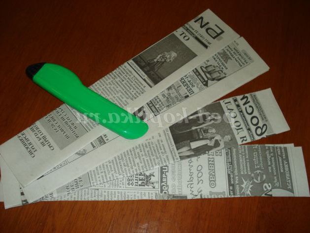 Приступаємо до роботи. Спочатку будемо крутити трубочки. Для цього наріжемо газету з допомогою канцелярського ножа на смужки шириною 5-7 см